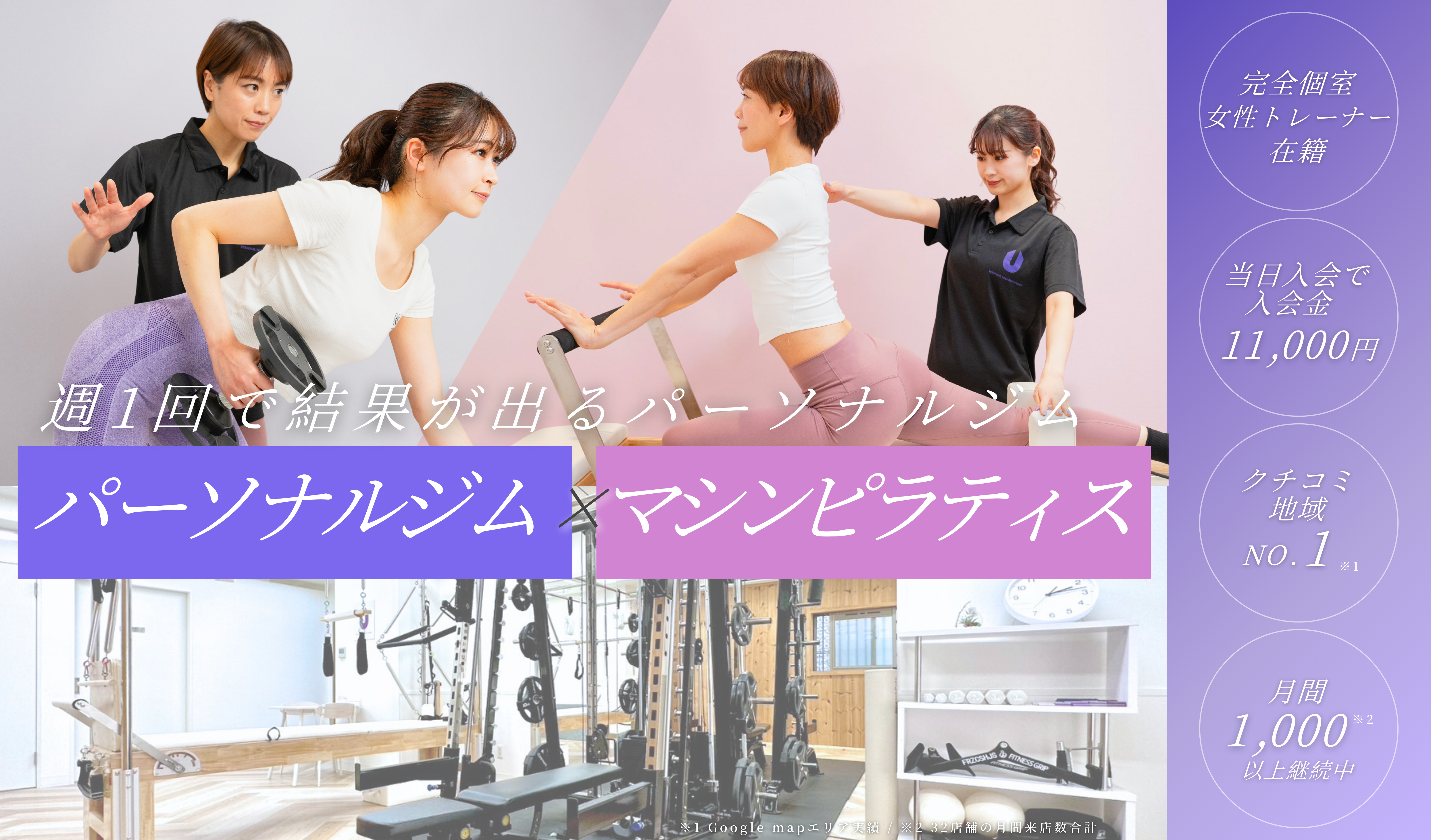 スタジオU能見台店は50分間の中でトレーニング・マシンピラティス・整体を自由に受ける事ができるハイブリッド型パーソナルジムです。